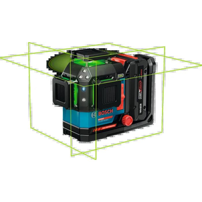 Bosch Linienlaser EXLL18V-120-33CG, 120 m Radius, grün, IP65, Deckenklemme, Laserzieltafel,