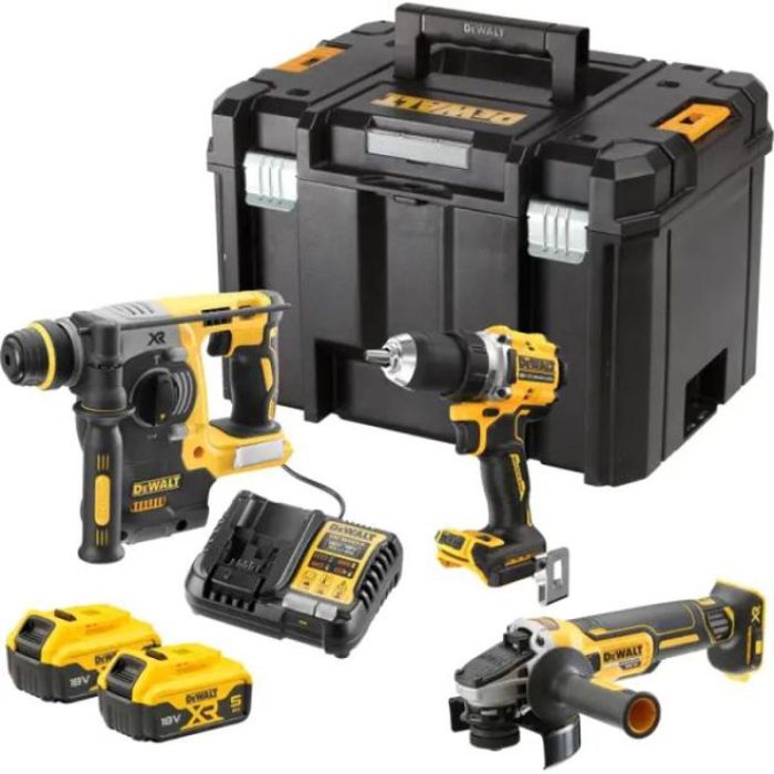 DeWALT Akku Set DCK 330P2T 18V bestehend aus Bohrschrauber, Kombihammer u. Winkelschleifer