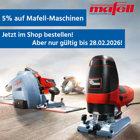 | | 5% auf alle Mafell-Maschinen! | 5 % Preisvorteil auf das gesamte Mafell Maschinen-Sortiment Beste Mafell Qualität - Ideal für Baustelle, Werkstatt und Montage.