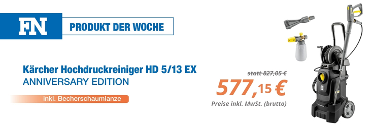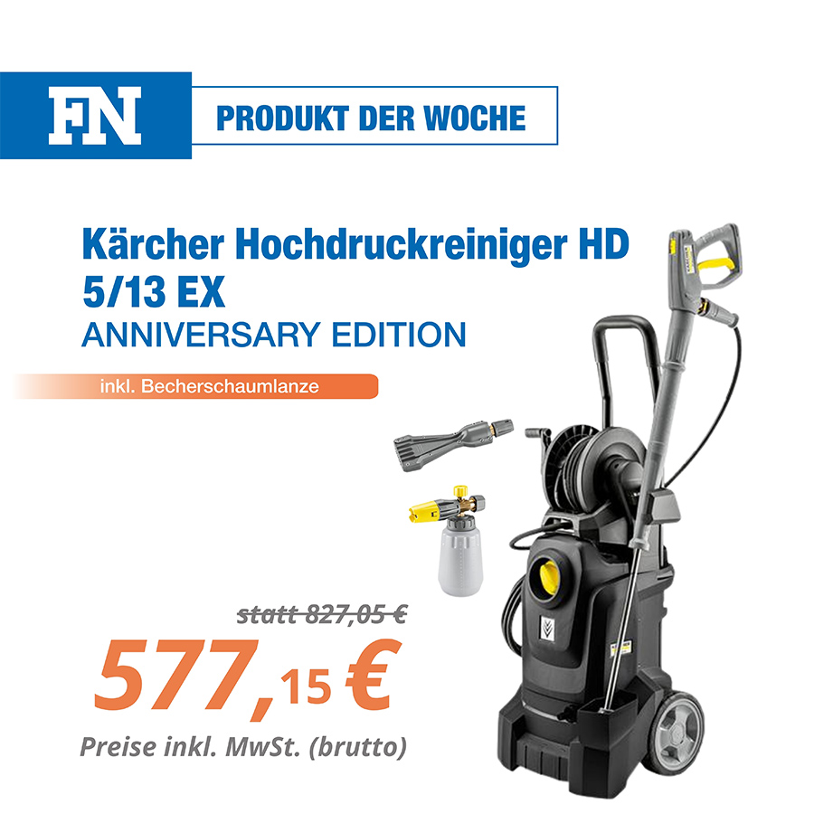 | Das Altgerät (jeder Hersteller) bei FN abgeben und bis zu 1.000 Euro Altgeräteprämie auf einen neuen Heißwasser-Hochdruckreiniger von Kärcher sichern! | | |