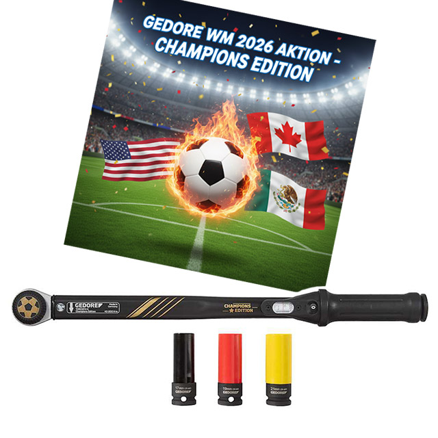 | | | Gedore Drehmomentschlüssel Torcofix | im Set mit 3 Kraftnüssen (17, 19, 21 mm), 40 - 200 Nm, WM Champions Edition | | | | | Preise zzgl. MwSt. (netto) | | | | | Preise inkl. MwSt. (brutto) | | |