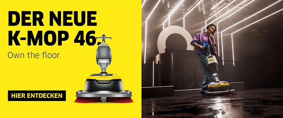 Kärcher Akku-Scheuersaugmaschine K Mop 46 Bp Pack 36/75 inkl 7,5 AH Akku und Schnellladegerät | Der K-Mop 46 ist der Profi in Sachen professioneller Reinigung. Er überzeugt durch sein hervorragendes Handling und die intuitive Bedienung und setzt damit neue Maßstäbe. Durch seinen mühelosen Einsatz ist er die optimale Wahl für nahezu jedes Objekt. Ob überstellte Bereiche, Sanitärräume oder etwas größere Flächen – der K-Mop 46 bietet mit seiner Wendigkeit und großen Arbeitsbreite die perfekte Lösung.