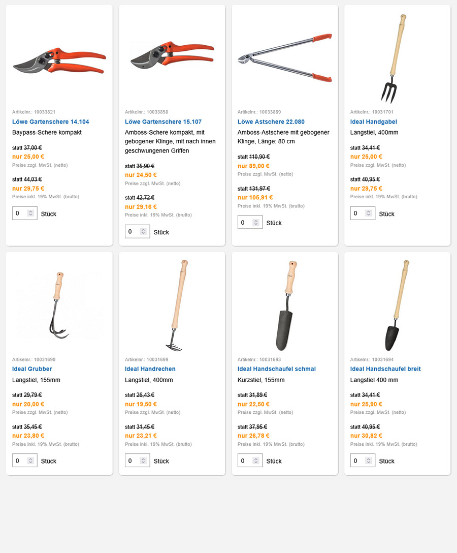 | | Preisstellung | Preise zzgl. Versandkosten von 9,50 € netto / 11,31 € brutto oder auf Palette 60,00 € netto / 71,40 € brutto