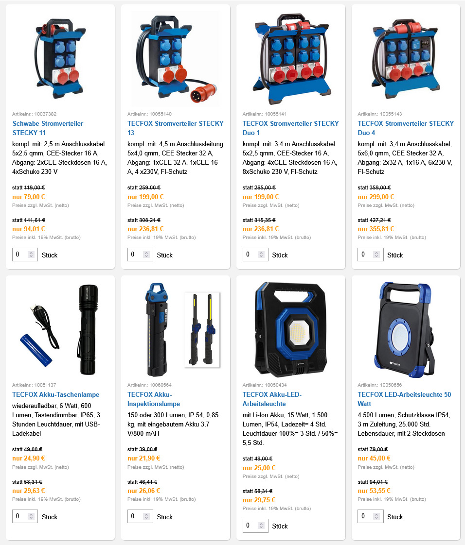 | | TECFOX Steckschlüsselsatz 1/4" | | | | | | | Preise zzgl. MwSt. (netto) | | | | | Preise inkl. MwSt. (brutto) | | |