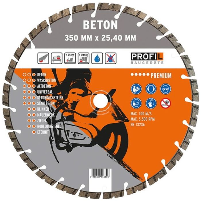 Die Profil Diamantscheibe mit den Maßen 125 x 2,0 x 22,22 mm ist ein Werkzeug zum Schneiden von Materialien wie Beton, Naturstein und Ziegel. Sie ist für den Einsatz mit Winkelschleifern konzipiert und ermöglicht präzise Schnitte.
