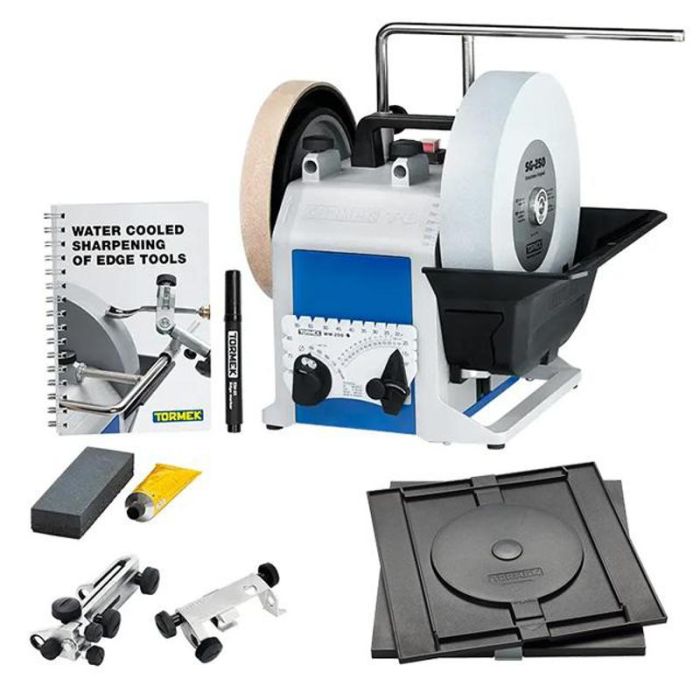 Leistungsstarke wassergekühlte Nassschleifmaschine für höchste Präzision. 200 W Industriemotor, Ø 250 mm SG‑250 Schleifstein (220–1000), robustes Vollguss‑Zinkgehäuse. Inkl. RB‑180 Drehscheibe für ergonomisches Arbeiten und exakte Reproduzierbarkeit – ideal für Profis und anspruchsvolle Anwender.